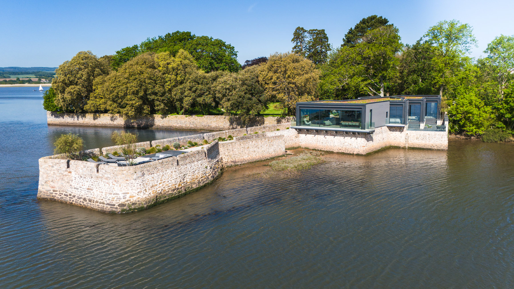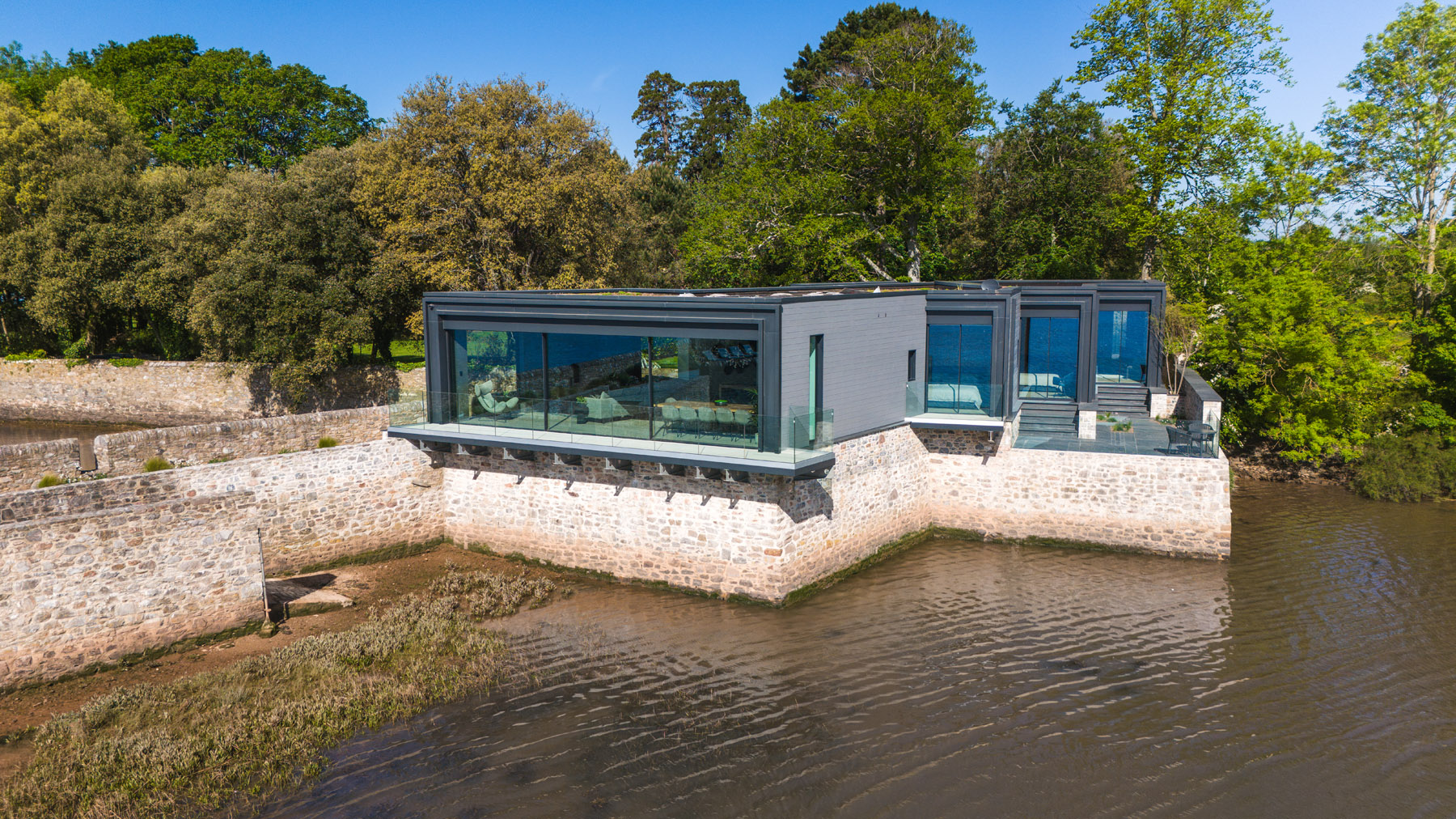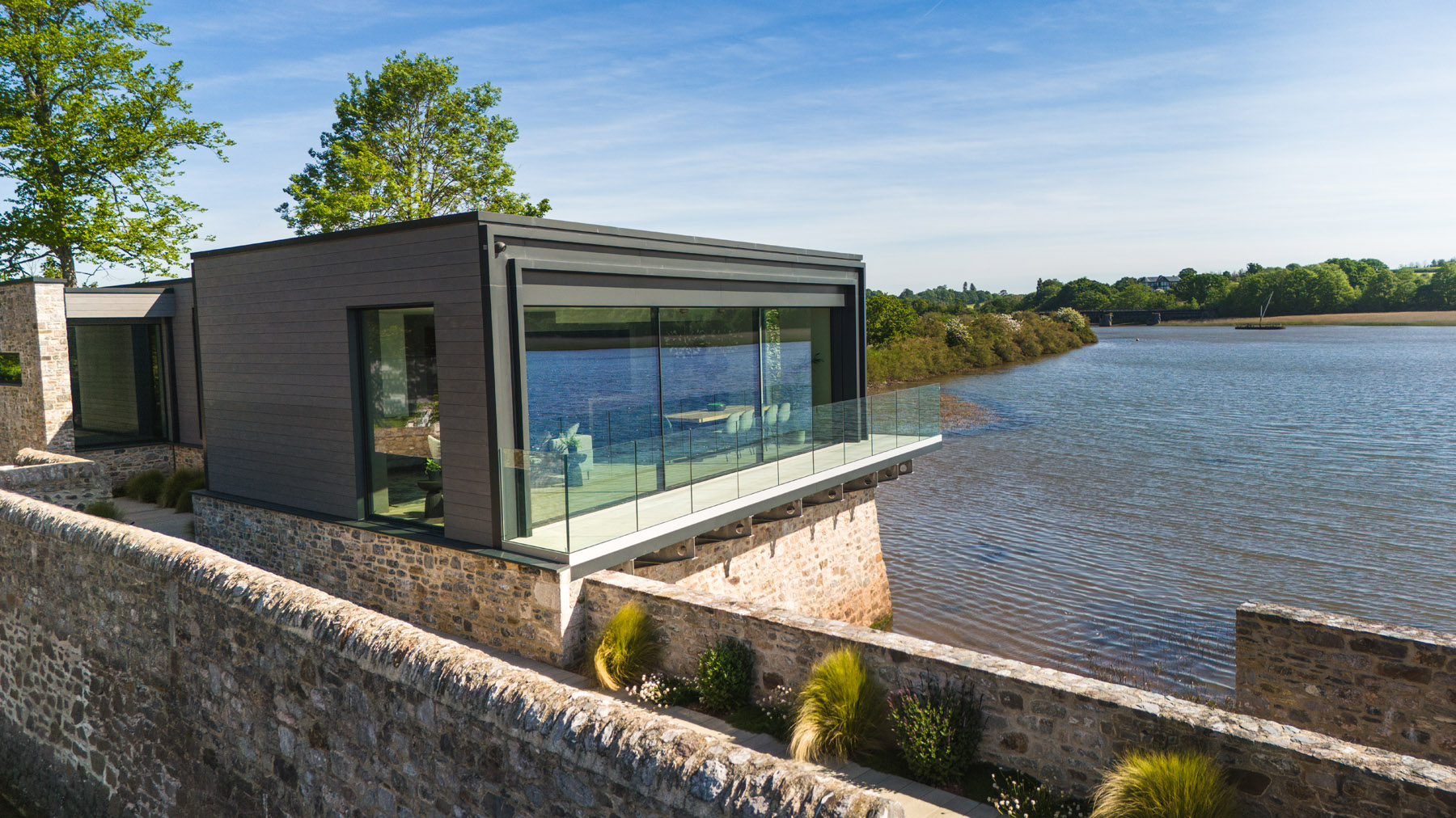 The new boat-house/pavilion, at the confluence of the Rivers Exe and Clyst, reinstates an earlier Victorian quay and rebuilds the dilapidated riverside wall. The contemporary design successfully marries the history of this spot to present-day living and makes full use of the spectacular southward estuary views. The project, within the garden of the Grade II listed Riversmeet House, is part of extensive improvements to the property by Grainge Architects, including restoration of the “widow’s tower”.