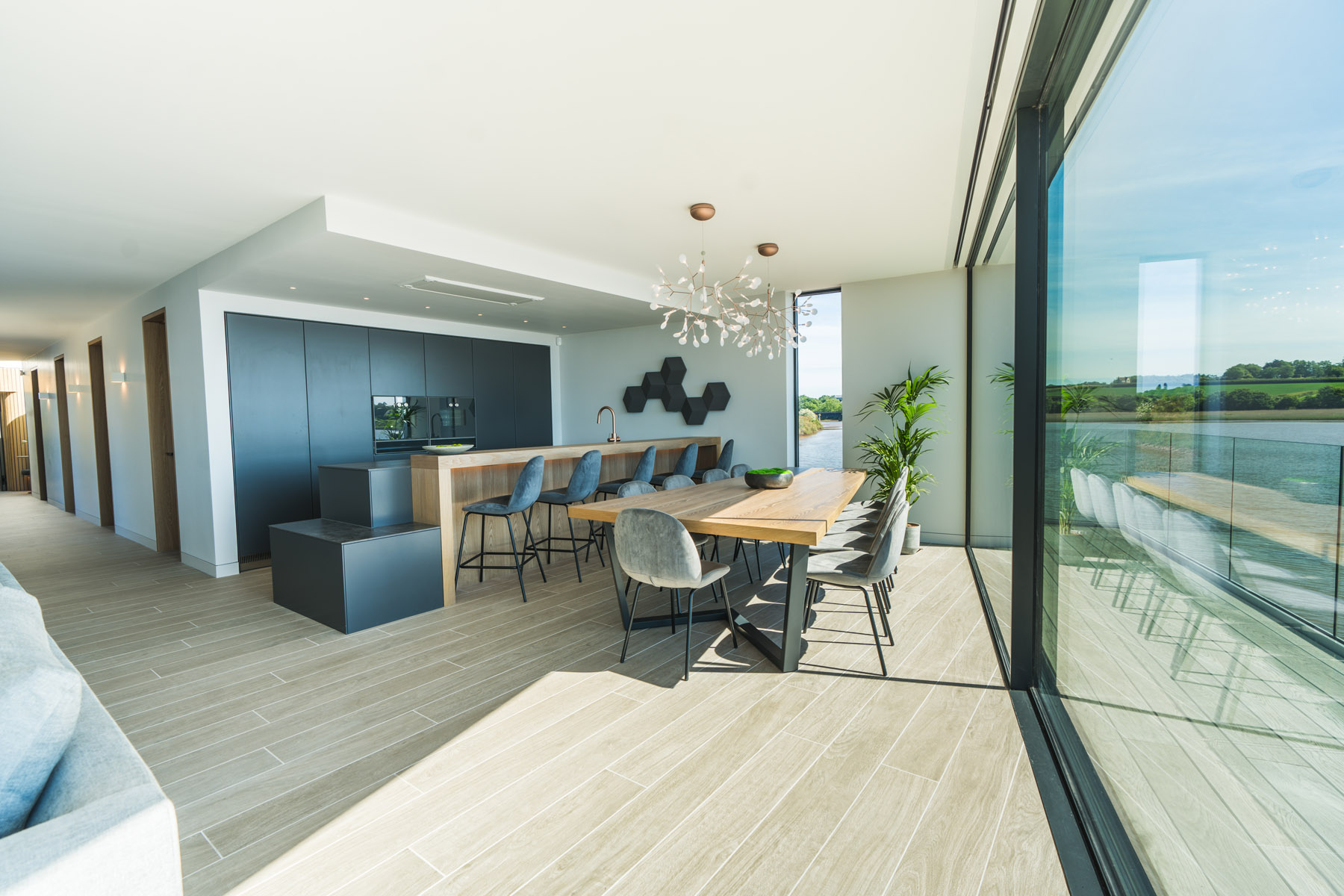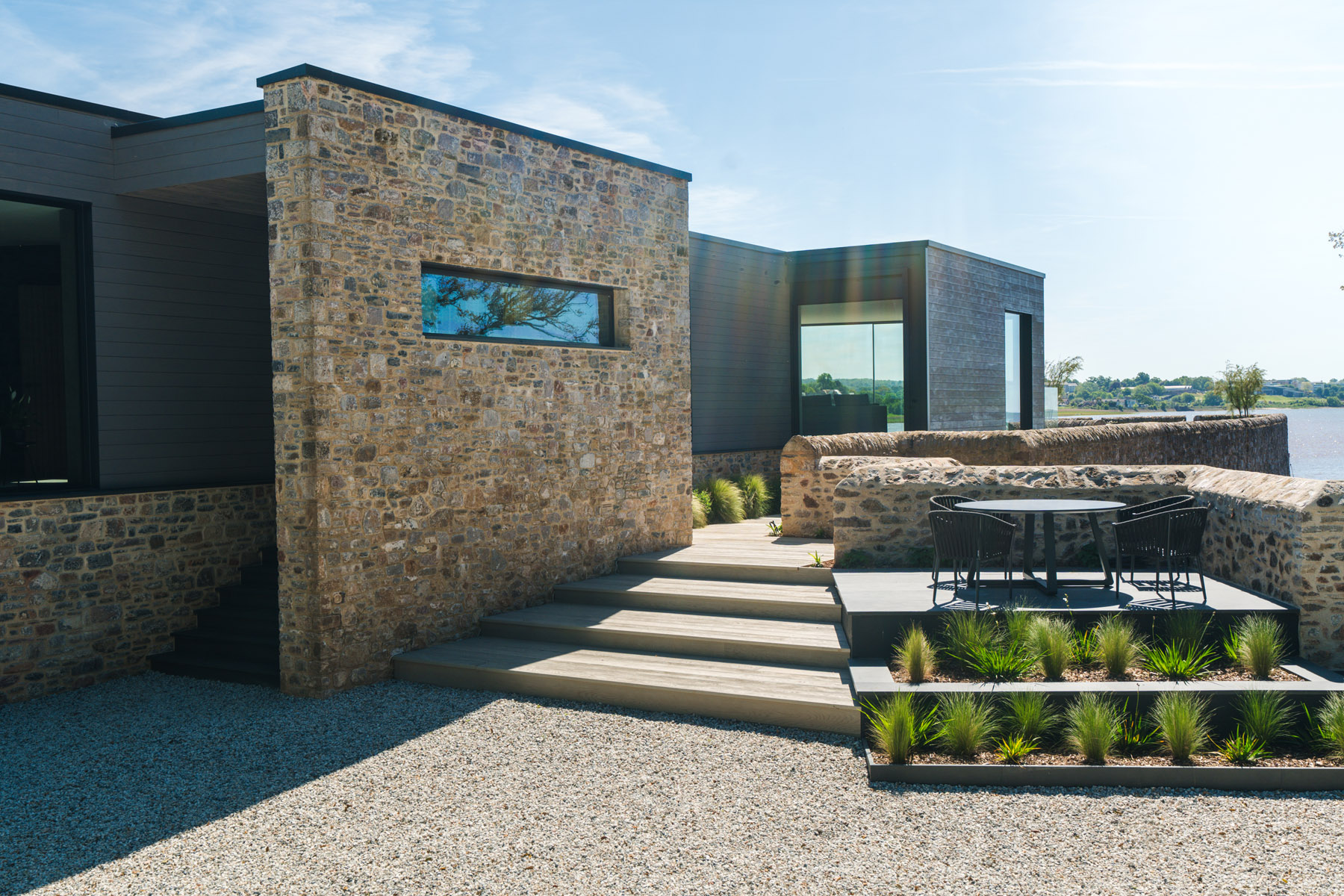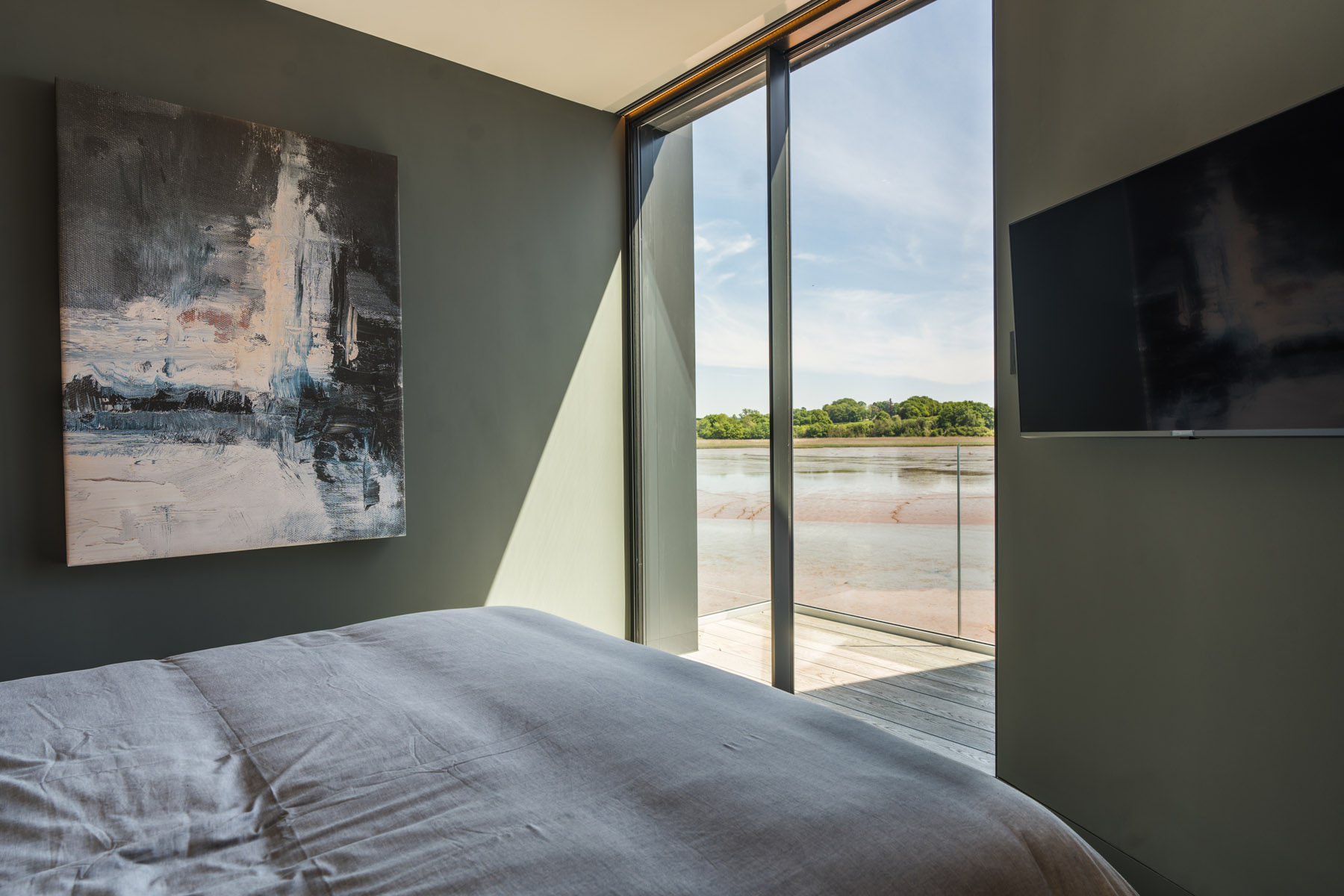 The new boat-house/pavilion, at the confluence of the Rivers Exe and Clyst, reinstates an earlier Victorian quay and rebuilds the dilapidated riverside wall. The contemporary design successfully marries the history of this spot to present-day living and makes full use of the spectacular southward estuary views. The project, within the garden of the Grade II listed Riversmeet House, is part of extensive improvements to the property by Grainge Architects, including restoration of the “widow’s tower”.